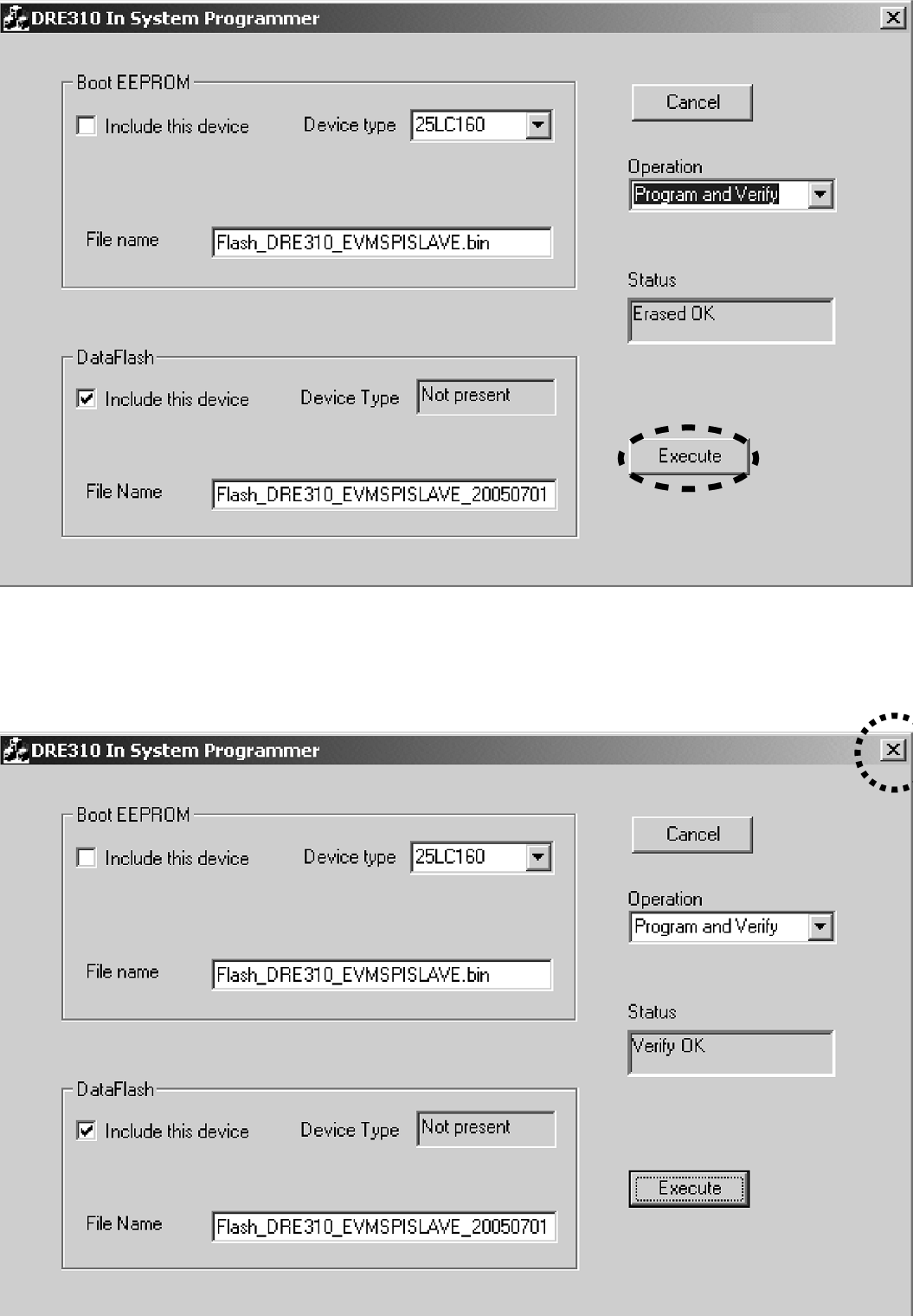 * Writing data [Flash _DRE310_EVMSP | SLAVE_20050701_TBK_01_002_HE.bin] File name will change according to release date.