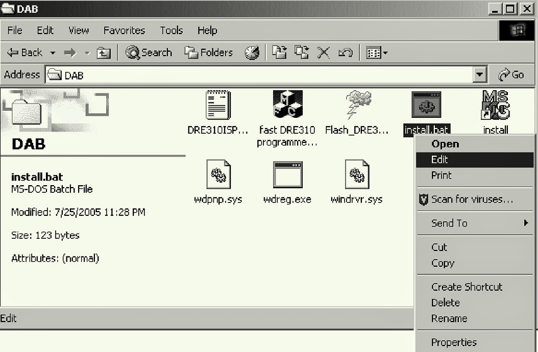 Press right button of mouse on the install.bat, and choose the Edit in menu.The text which copies ‘wdpnp.sys’ and ‘windrvr.sys’ file to the system folder of Windows is described. Check the following texts. When text is different, correct it, the save as filename.