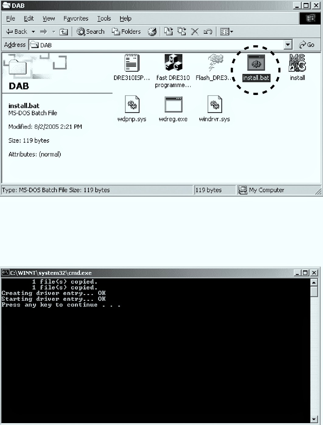 * Writing software and several files [DAB folder: include fast DRE310 Programmer.exe, install.bat, etc….]