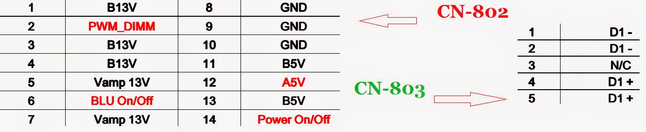 CN803 IP SMPS to /fro MAIN BOARD connector voltages.