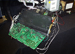 The standby and main (run) power supplies are located on the AC In circuit board. The standby supply is on whenever the unit has 120V AC applied. A voltage multiplier is also located on the AC In CBA. This multiplier produces the high voltage that is required for the lamp power supply. The relay that routes the AC to the doubler is the relay that is heard when the unit is plugged in. Routing the +12VS voltage through the lamp door switch operates the relay. This is a safety feature that shuts off the lamp and supply when the customer accessible lamp door is opened.