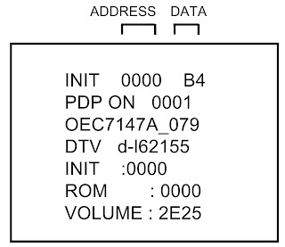 - Initial total of MEMORY IC, POWER ON total hours, MICON VERSION and Digital TV MICON Firmware can be checked on the screen. Total hours are displayed in 16 system of notation.