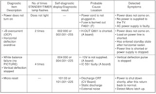 If a + B over-current is detected, stoppage of the vertical deflection is detected simultaneously. The symptom that is diagnosed first by the micro controller is displayed on the screen.
