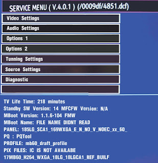 In order to reach service menu, First Press “MENU” then write "4725" by using remote control. In first screen following items can be seen: