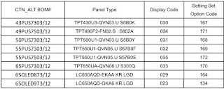 of the panel type: see column “Display Code” in below tab. After resetting the Display Code, restart the set immediately.