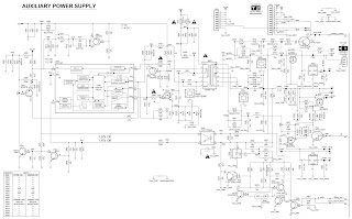 IC 7510 is the heart of the Auxiliary Power supply. In the Standby mode, VIA the current sensing and Control circuits, a low power condition is detected by the IC. The IC then goes into a Burst Mode operation to reduce the power used by the circuit. In the Burst Mode, the supply will operate at approximately 25 kHz. In full power operation the frequency will be approximately 66 kHz.