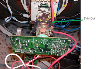 There are two coils on the deflection coil in addition to the Vertical and Horizontal winding. The SCAVEM coil (Scan Velocity Modulation) sharpens the edges between light and dark transitions.
