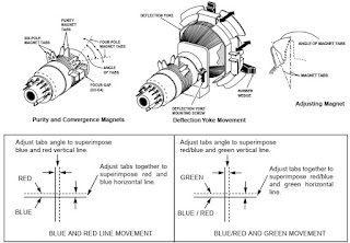 6. Check the purity of the red and blue screens for uniformity, turn off other colours to check this (use bias controls). Readjust the yoke position if necessary until all screens are pure.