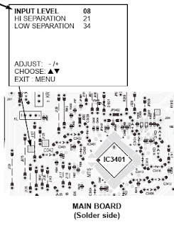 7. Adjust the level of 4KHz at TP-318 (pin-39 of IC3401) to become minimum level by pressing the VOLUME (+/-) button on the remote control or TV set.
