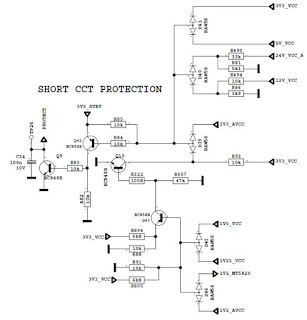 Short circuit protection is necessary for protecting chassis and main IC against damages when any Vcc supply shorts to ground. Protect pin should be logic high while normal operation. When there is a short circuit protect pin should be logic low. After any short detection, SW forces LEDs on LED card to blink.