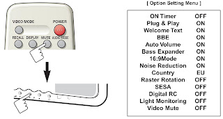 - Press and hold the MUTE button on the remote control and press the CHANNEL DOWN (P▼)button on the front control panel of the TV. The option window will appear on the screen.