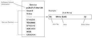 - To change data value: Select service item by pressing the Cursor UP or DN , and change data value by pressing the VOLUME + or - button.