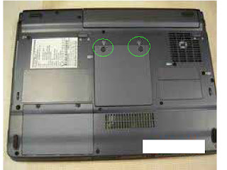 $ 0 0 RAM MODULE REMOVALRemove 2 screws and RAM door can be removed.Release the RAM catches on both sides. RAM module can be removed.HDD REMOVALRemove 2 screws and HDD door can be removed.Pull the HDD carefully with black tape.