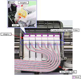 - Connect the Ink Supply Tube to the Adapter, and install the Adapter to the CR Unit.