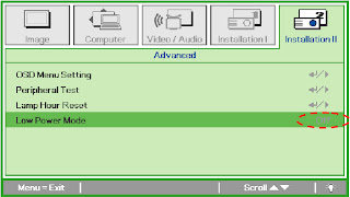 - Press “Down” button on the keypad to select “Low Power Mode” item, Press the “Enter” button to set function to “Off”.