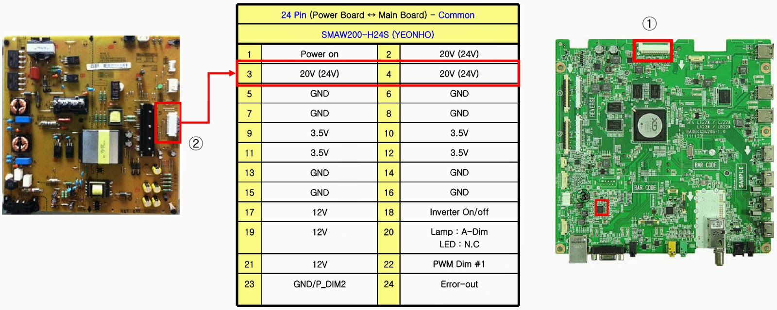 Check the DC 20V/24V, 12V, 3.5V.