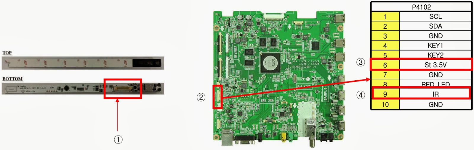 - Check IR cable condition between IR & Main board.