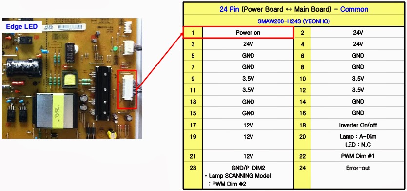 - Measure the 24V input voltage supplied from Power Board. (If there is no input voltage, remove and check the connector)