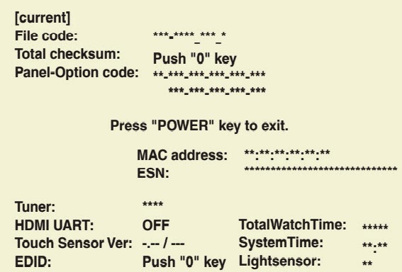- Press [0], [6], [2], [5], [9], [6] and [INFO] buttons on the remote control unit in this order. The following screen appears.