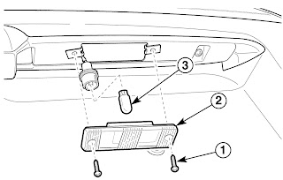 - Pry off the interior courtesy lamp lens (1).