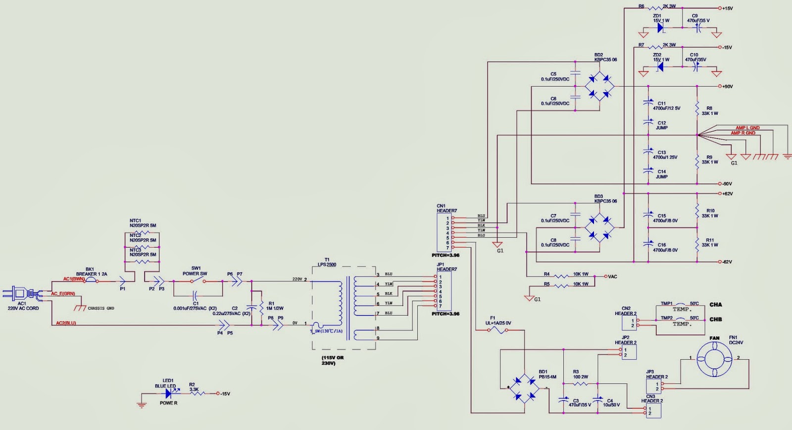 CROWN PHONIC - LPS2500 - AMPLIFIER - SCHEMATIC (Circuit Diagram)