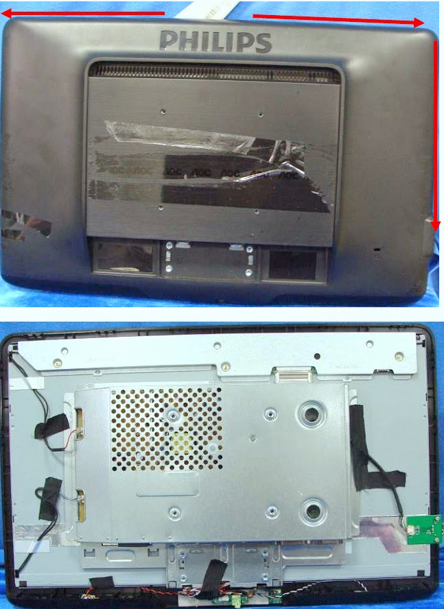 * Remove the five screws to remove the power board and scaler board from the main frame.