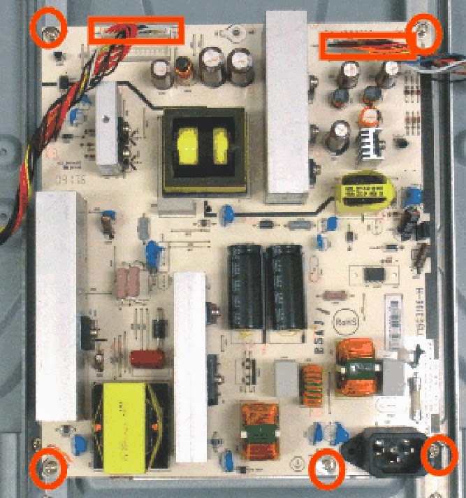 $ 0 0 DISSEMBLE PROCEDURE* Remove four screws to remove the base.* Remove thirty screws to remove the rear cover.* Remove five screws and unplug four connectors to remove the scaler board.* Remove five screws and unplug two connectors to remove the power board.
